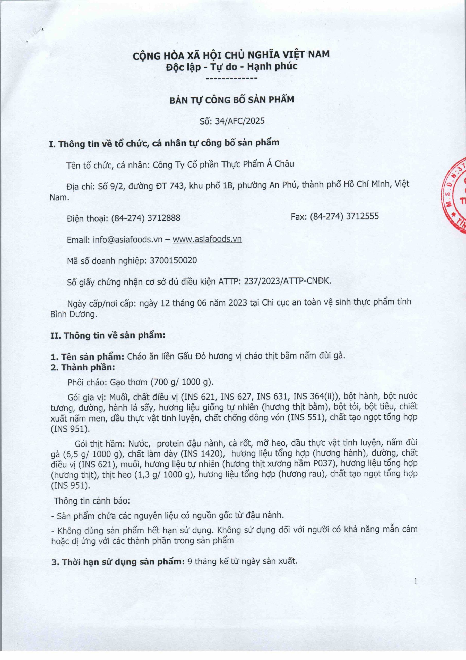34AFC2025-CHÁO ĂN LIỀN GẤU ĐỎ HƯƠNG VỊ CHÁO THỊT BẰM NẤM ĐÙI GÀ