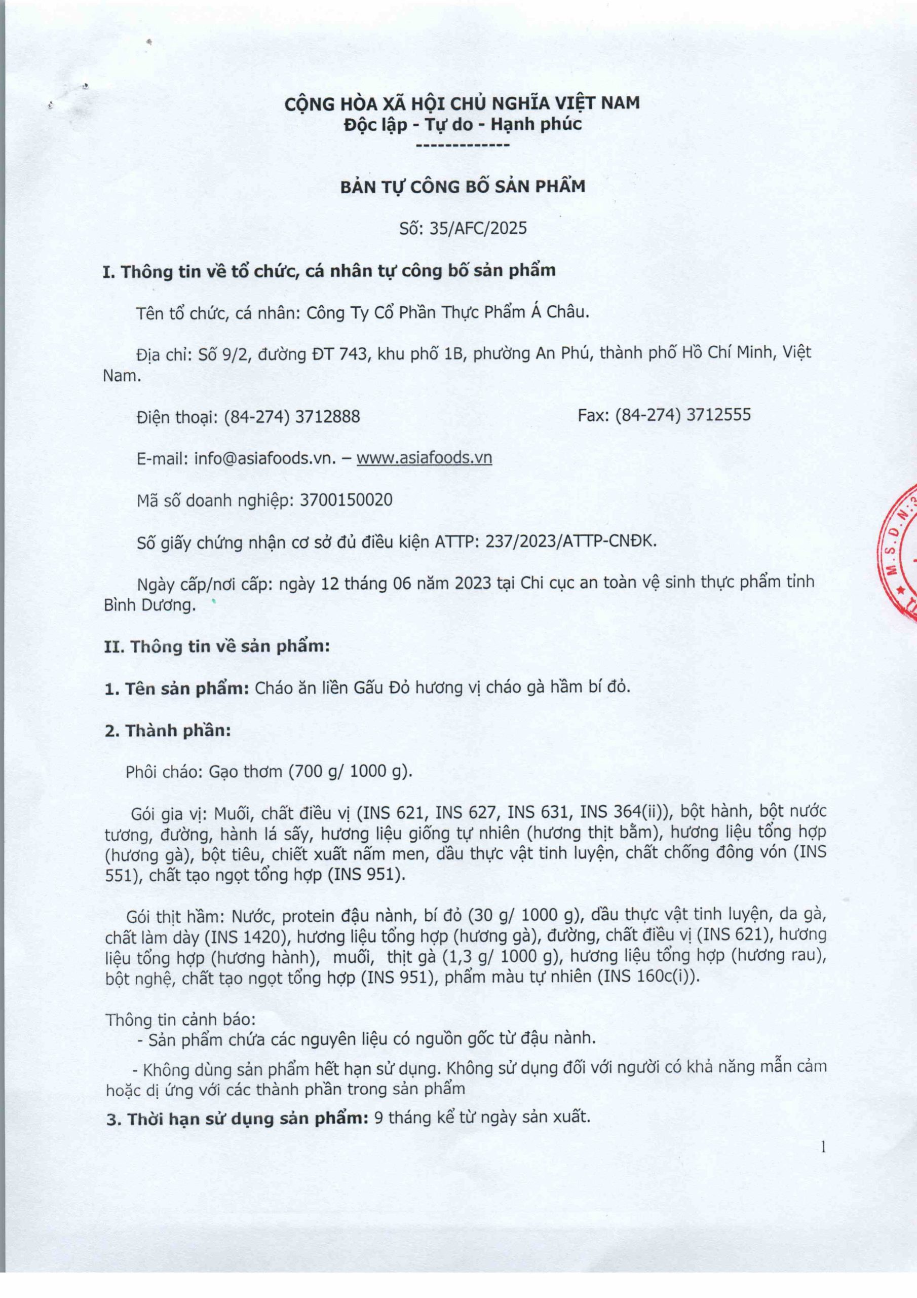 35AFC2025-CHÁO ĂN LIỀN GẤU ĐỎ HƯƠNG VỊ CHÁO GÀ HẦM BÍ ĐỎ