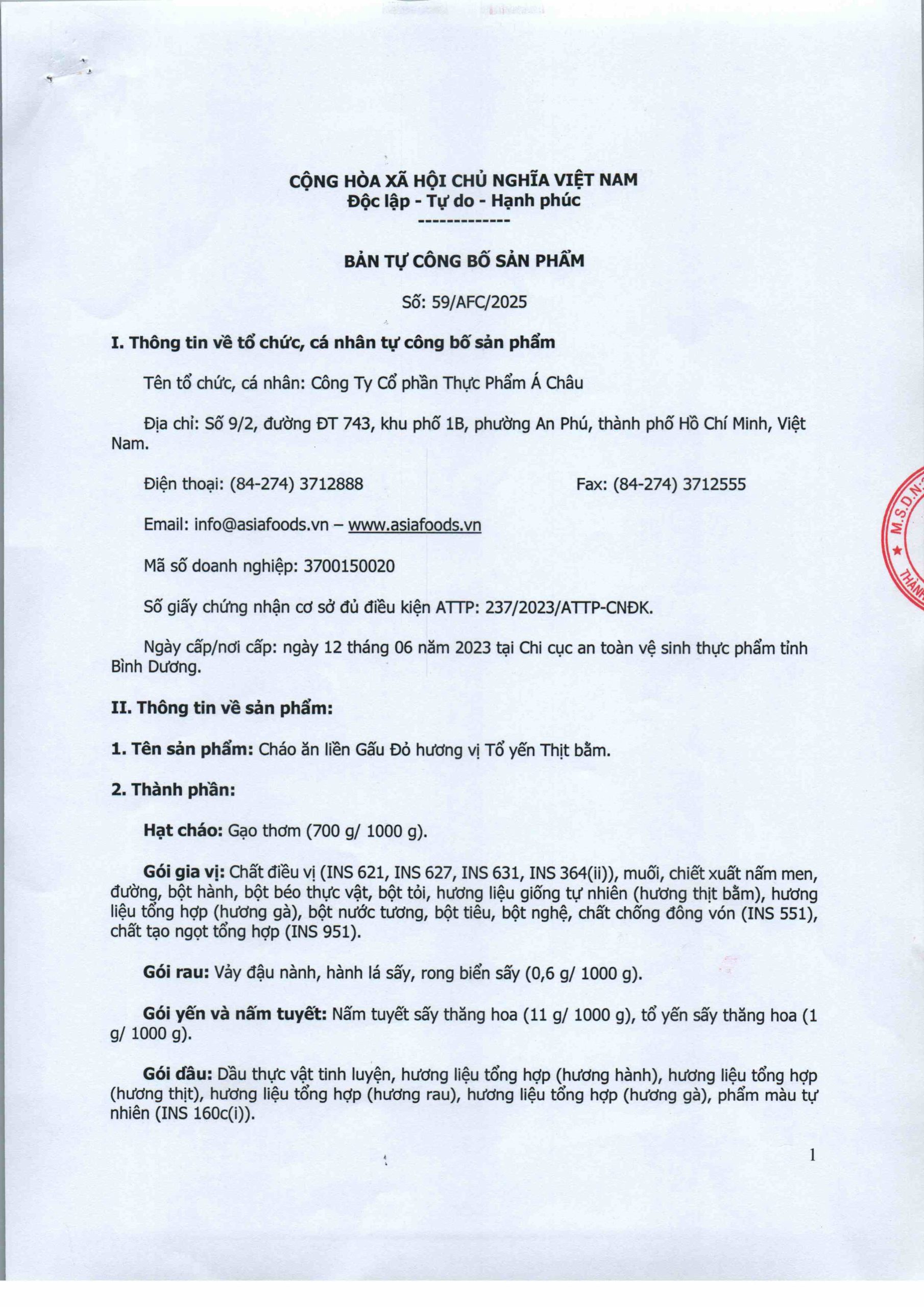 59AFC2025-CHÁO ĂN LIỀN GẤU ĐỎ HƯƠNG VỊ TỔ YẾN THỊT BẰM_Số 59.2025