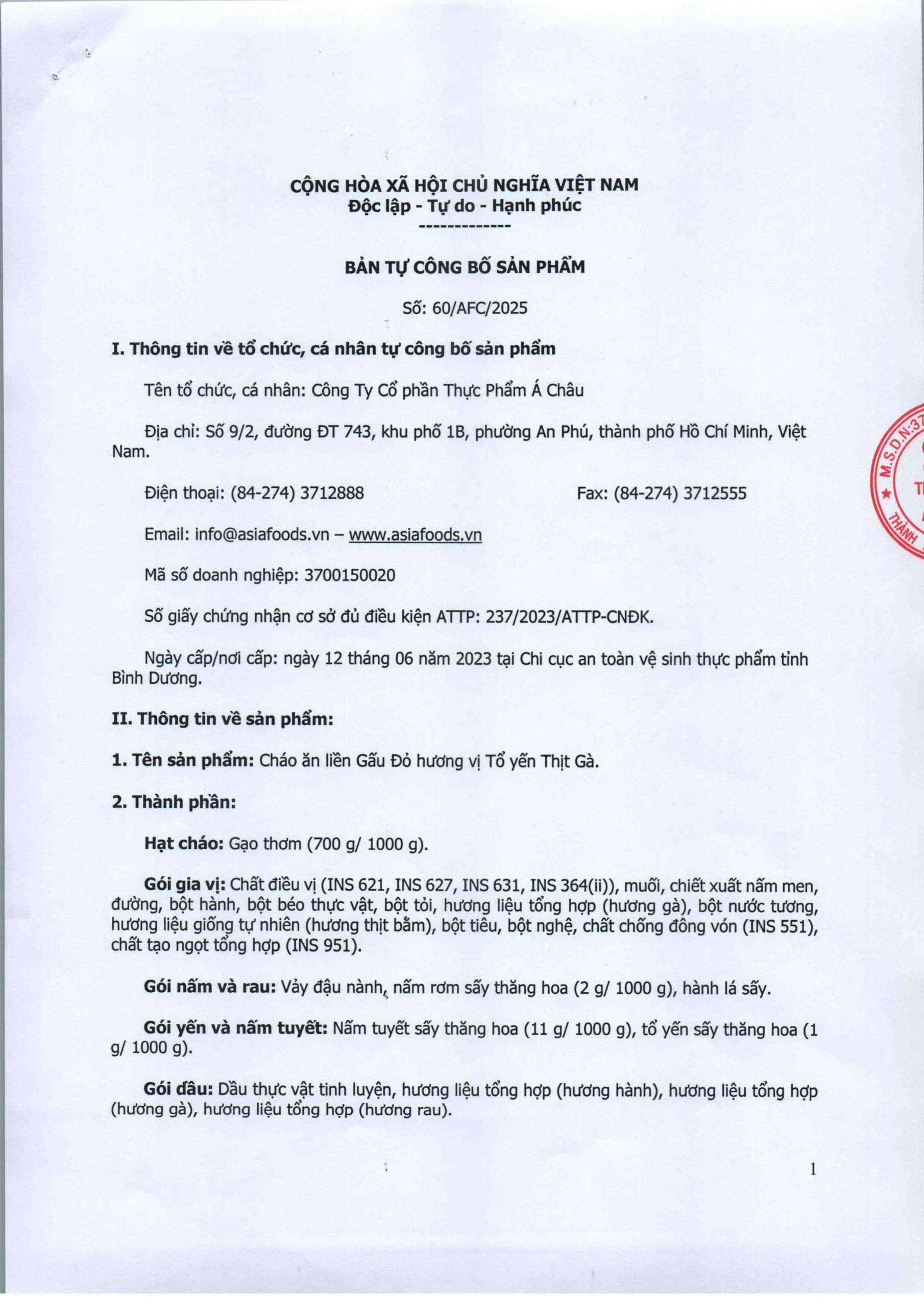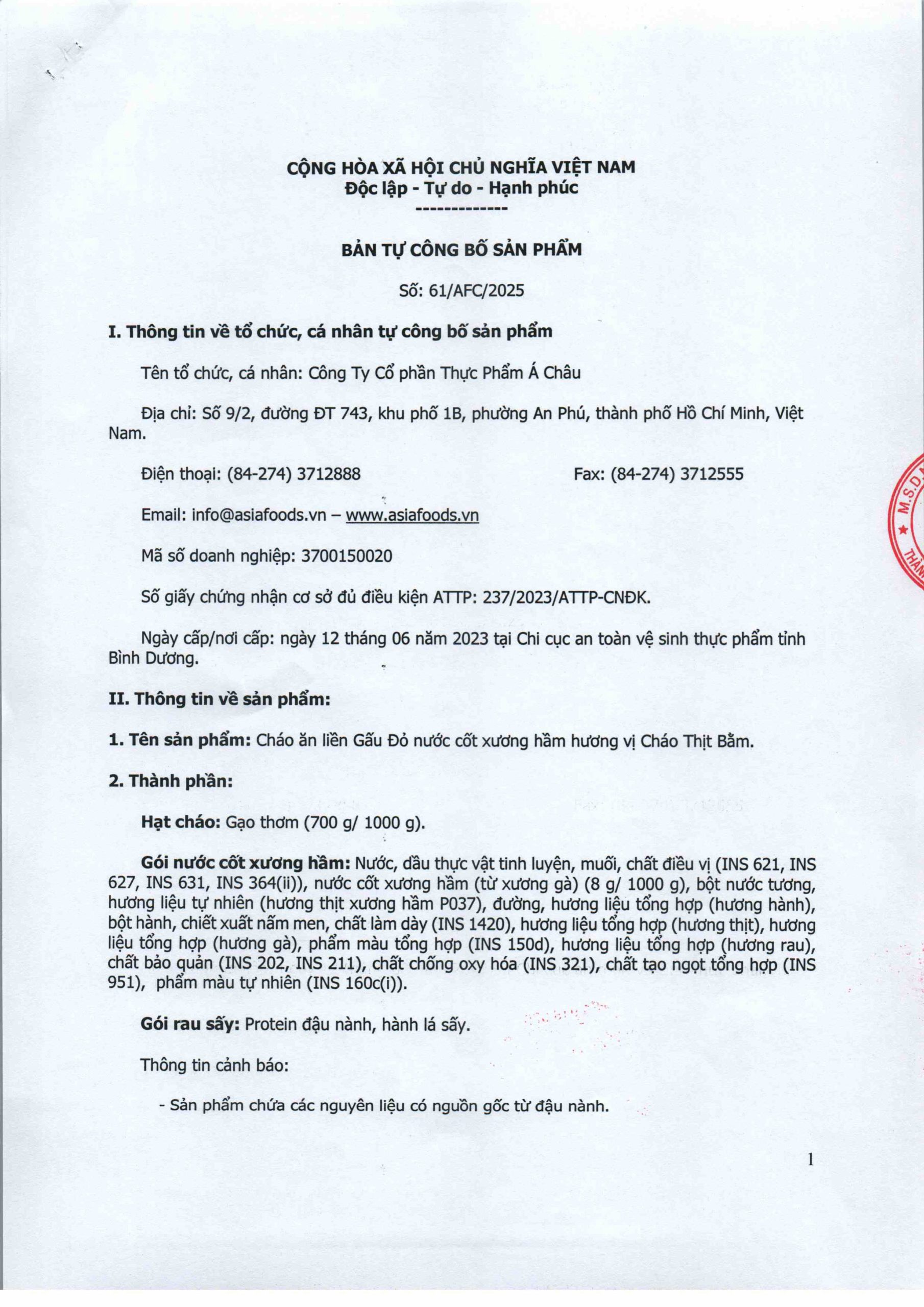 61AFC2025-CHÁO ĂN LIỀN GẤU ĐỎ NƯỚC CỐT XƯƠNG HẦM HƯƠNG VỊ CHÁO THỊT BẰM_Số 61.2025