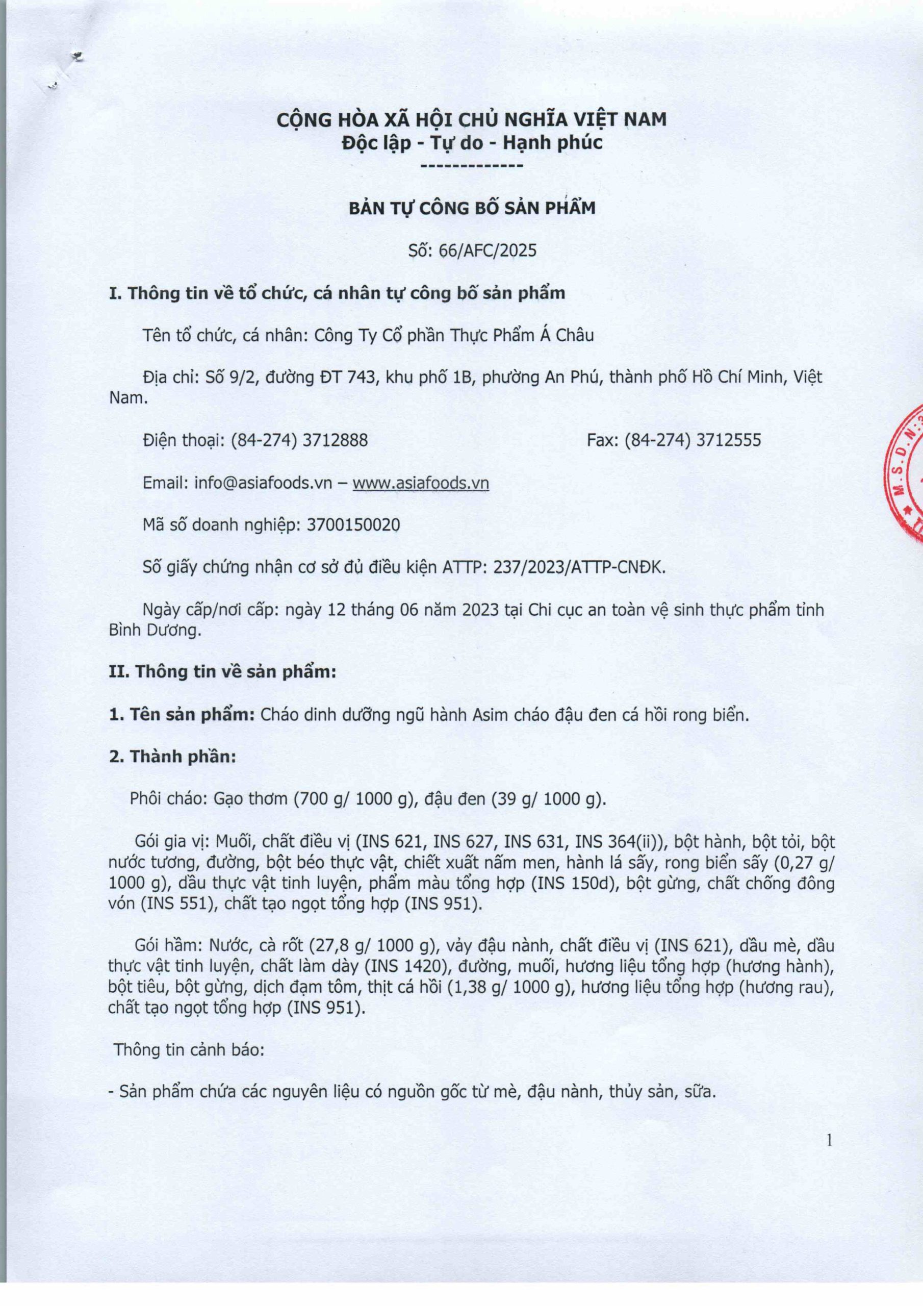 66AFC2025-CHÁO DINH DƯỠNG NGŨ HÀNH ASIM CHÁO ĐẬU ĐEN CÁ HỒI RONG BIỂN