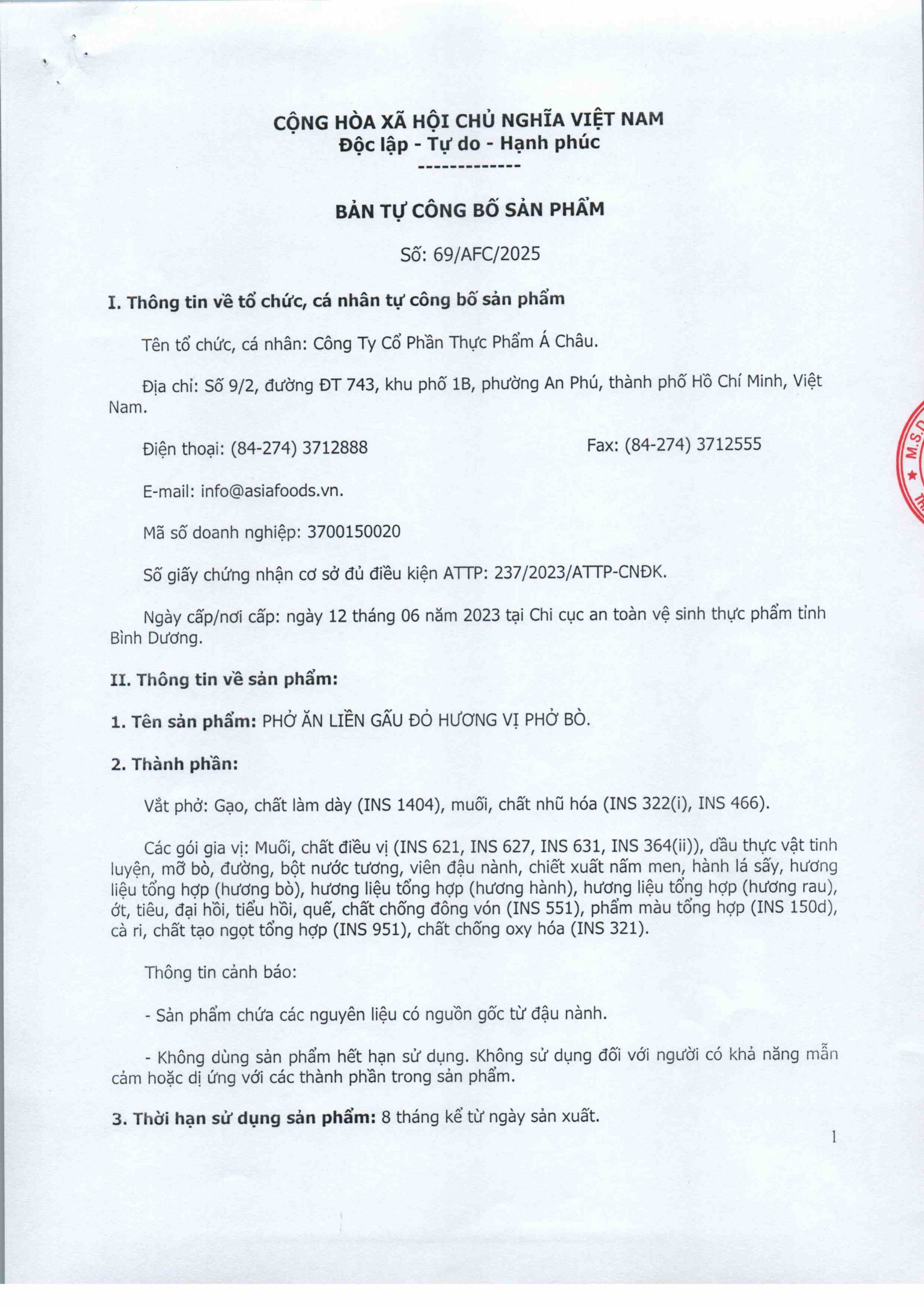 69AFC2025-PHỞ ĂN LIỀN GẤU ĐỎ HƯƠNG VỊ PHỞ BÒ_Số 69.2025