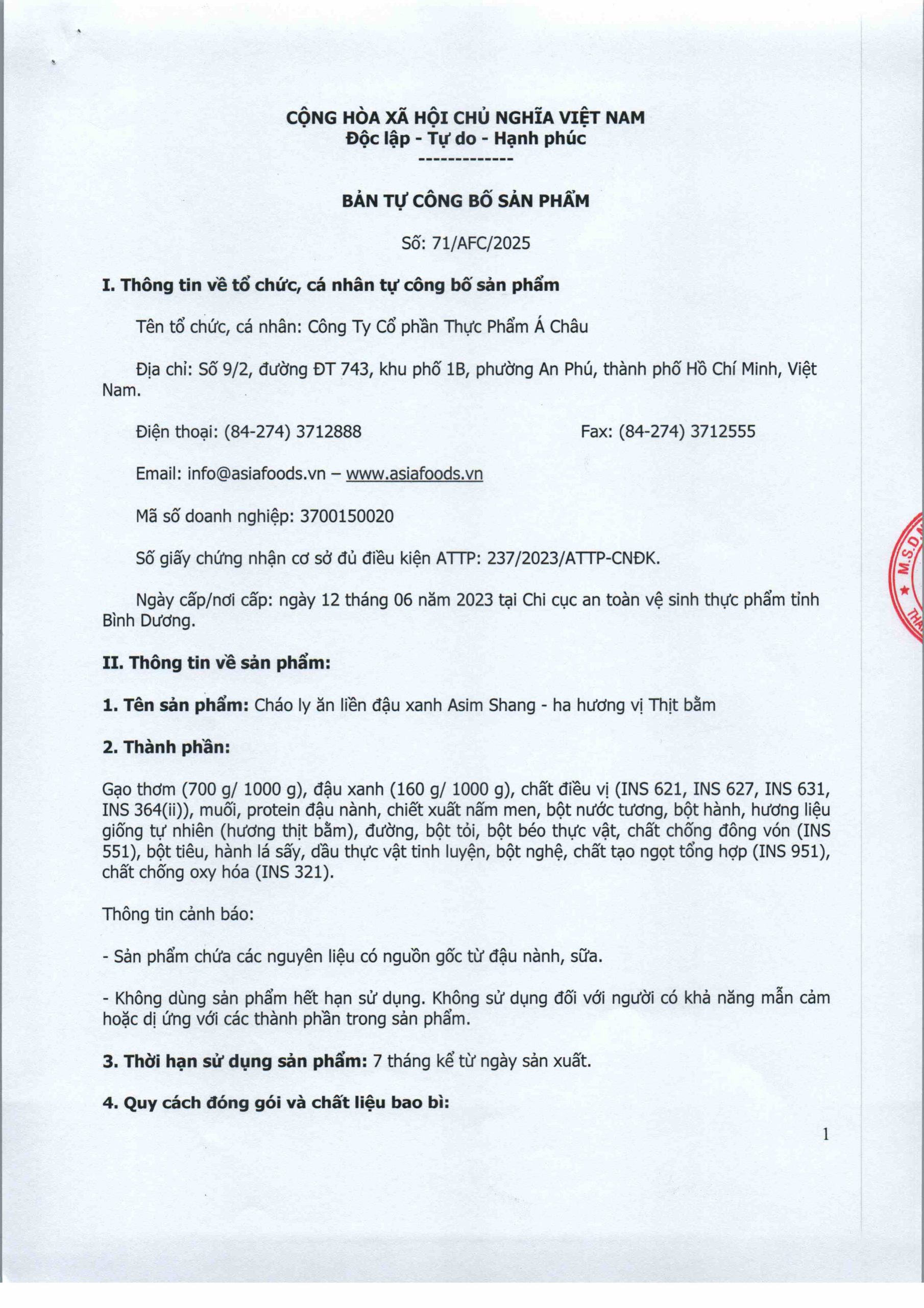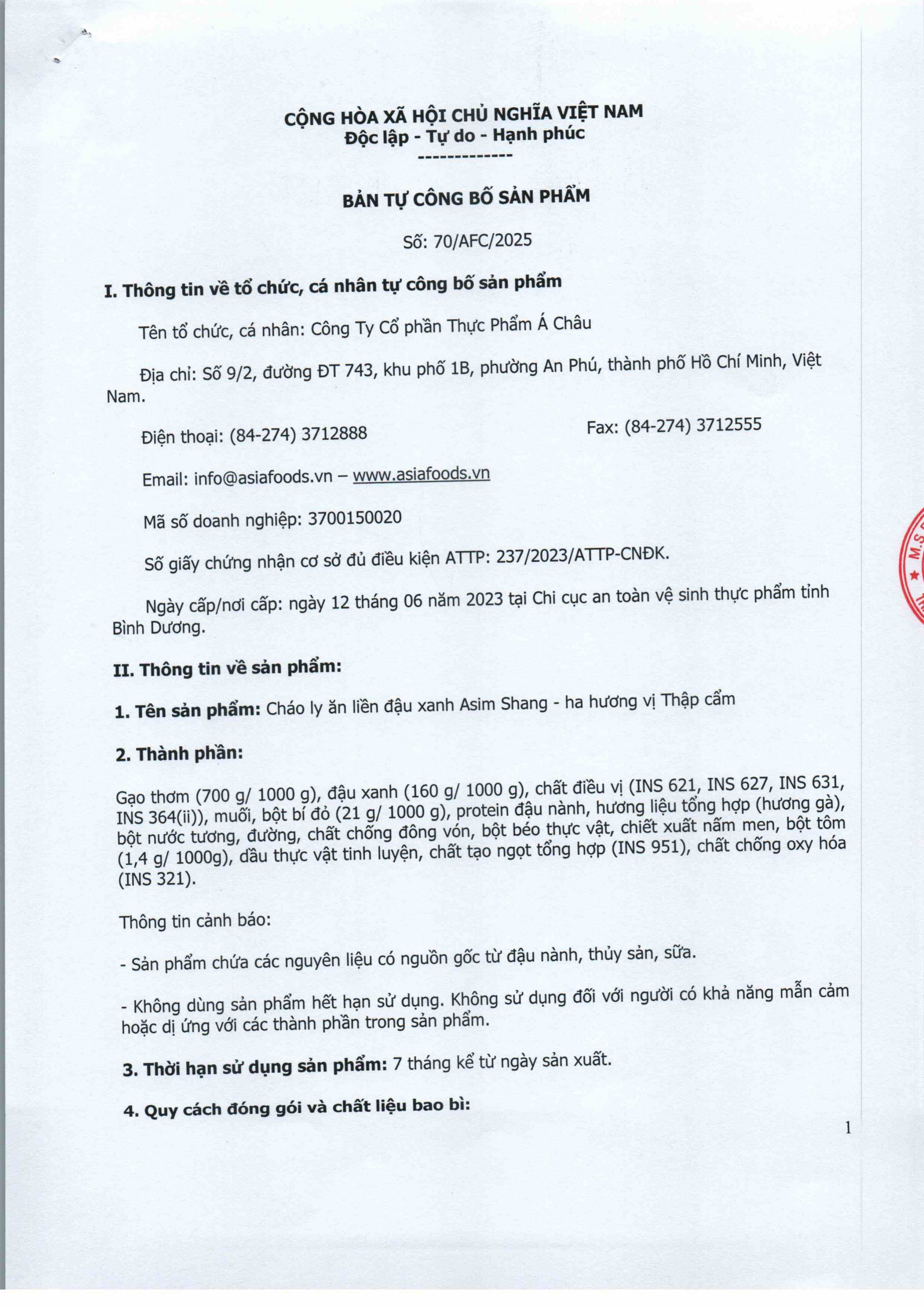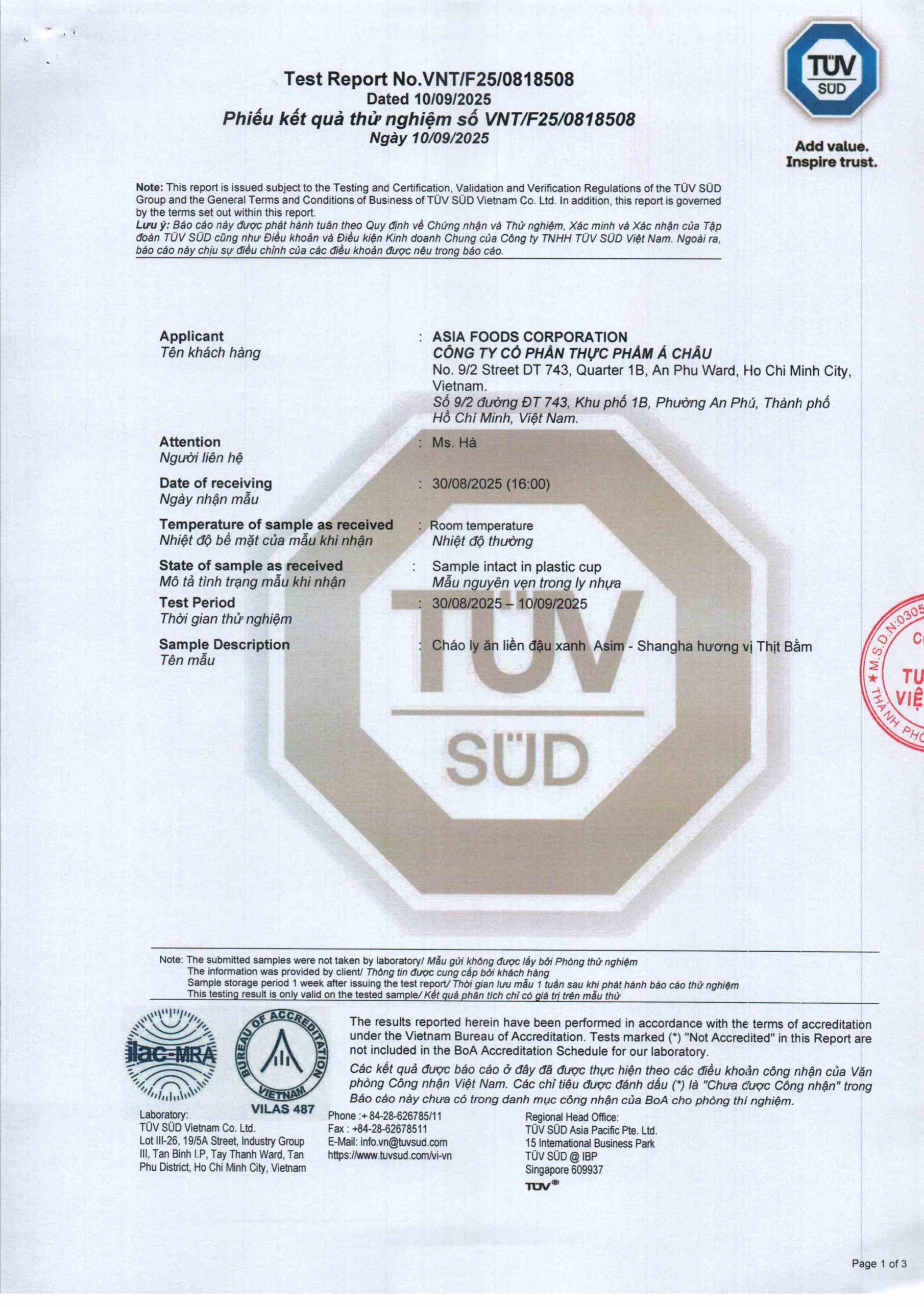 CHÁO LY ĂN LIỀN ĐẬU XANH ASIM SHANG-HA HƯƠNG VỊ THẬP CẨM 23-10